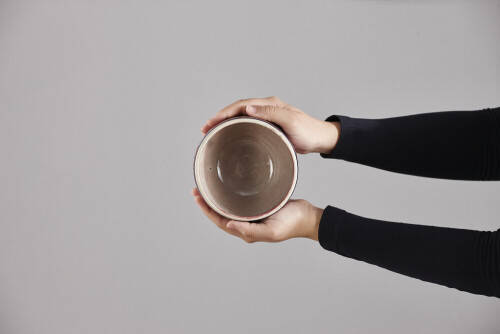 black bowl on wooden tray