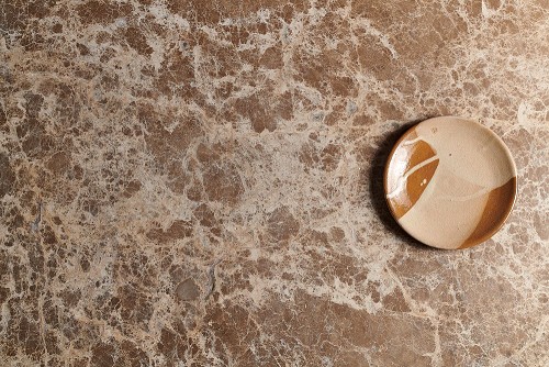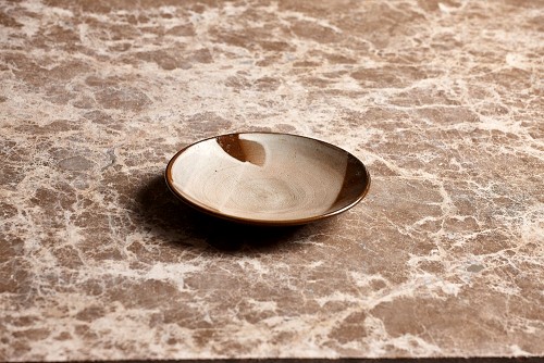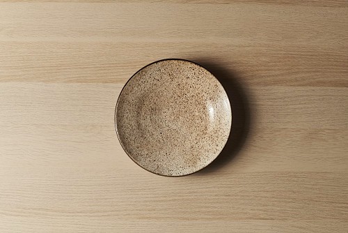 multi color pottery round bowl on top of multi color round ceramic plate and chopsticks