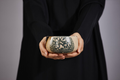black bowl on top of brown wood round plate and wood chopsticksx§x