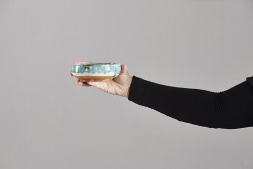 Multicolored Pottery Bowl with wooden honey handle on the side