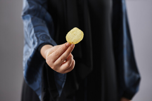 يد تحمل أطعمة متنوعة
