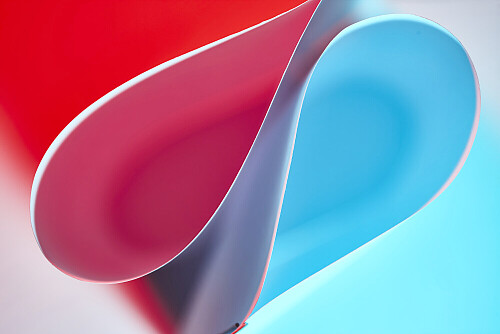 فن تجريدي لورق مطوي على شكل منحنيات ناعمة بتدرجات اللون الأزرق