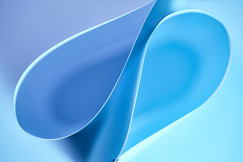 فن تجريدي لورق مطوي على شكل منحنيات ناعمة بتدرجات اللون الأزرق
