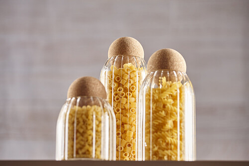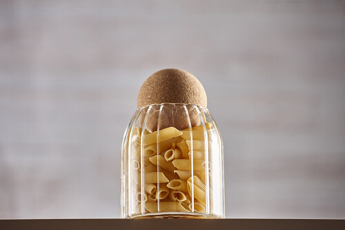 معكرونة في أوعية زجاجية علي خلفية بيج