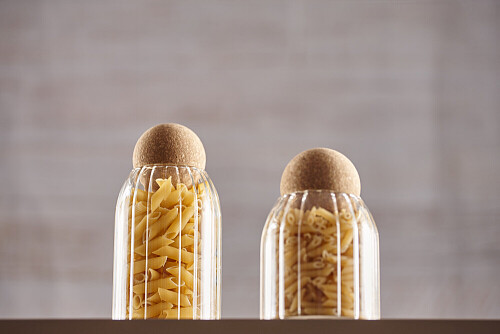 معكرونة في أوعية زجاجية علي خلفية بيج