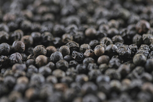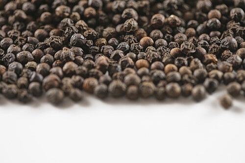 حبوب الفلفل الأسود علي خلفية بيضاء