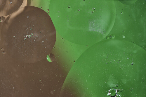 لقطات مقربة لفقاعات من الزيت على سطح الماء باللون الأخضر والبني