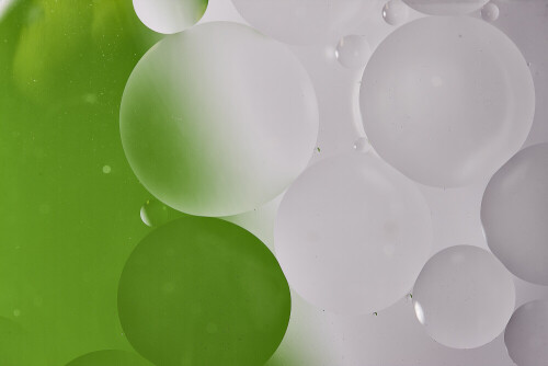 لقطات مقربة لفقاعات من الزيت على سطح الماء باللون الأبيض والأخضر