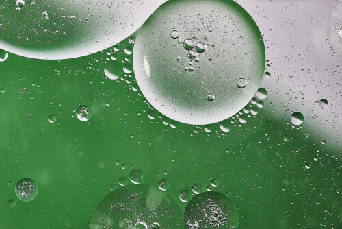 لقطات مقربة لفقاعات من الزيت على سطح الماء باللون الأبيض والأخضر