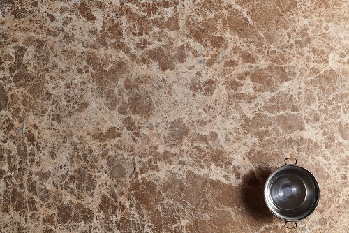 وعاء نحاسي صغير على خلفية من الرخام البيج