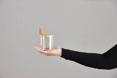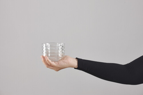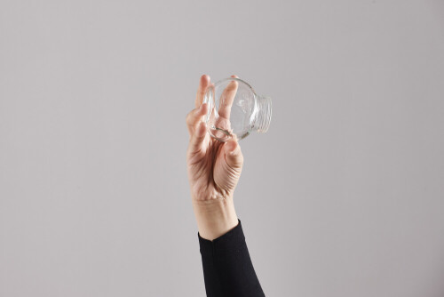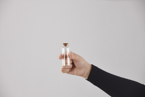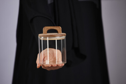 امرأة ترتدي عباءة سوداء تحمل أدوات زجاجية مختلفة في أوضاع متعددة