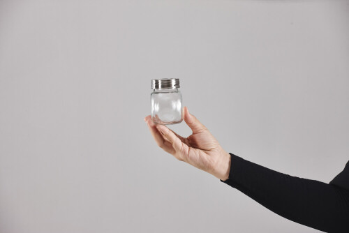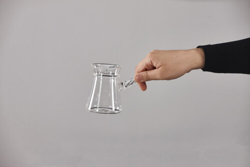 امرأة ترتدي عباءة سوداء تحمل أدوات زجاجية مختلفة في أوضاع متعددة