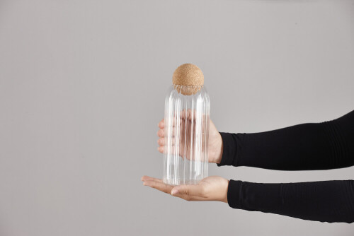 امرأة ترتدي عباءة سوداء تحمل أدوات زجاجية مختلفة في أوضاع متعددة