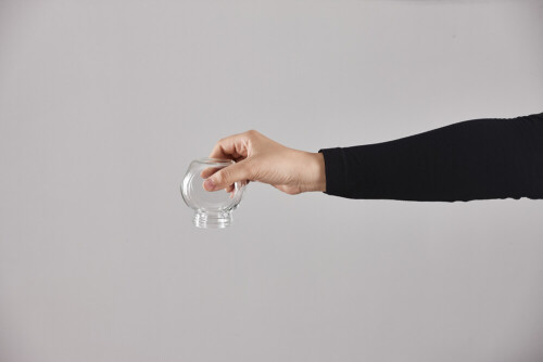 امرأة ترتدي عباءة سوداء تحمل أدوات زجاجية مختلفة في أوضاع متعددة