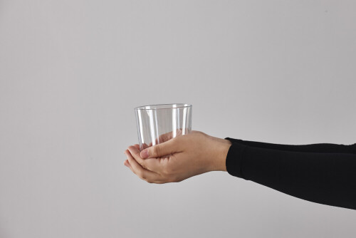 امرأة ترتدي عباءة سوداء تحمل أدوات زجاجية مختلفة في أوضاع متعددة
