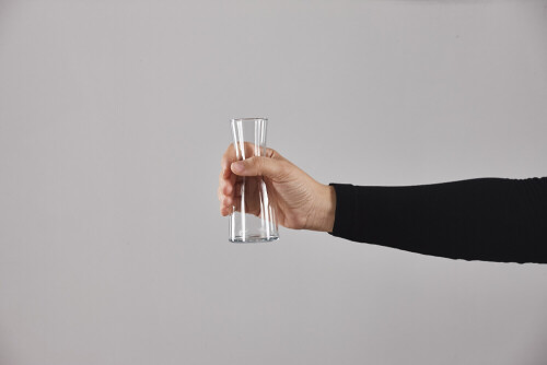 امرأة ترتدي عباءة سوداء تحمل أدوات زجاجية مختلفة في أوضاع متعددة