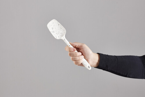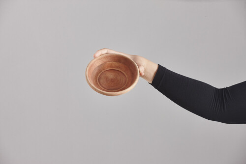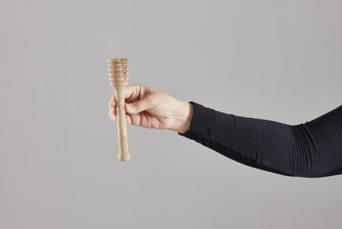 امرأة ترتدي عباءة سوداء تحمل أدوات خشبية مختلفة في أوضاع متعددة