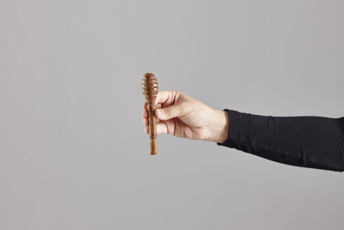 امرأة ترتدي عباءة سوداء تحمل أدوات خشبية مختلفة في أوضاع متعددة