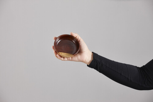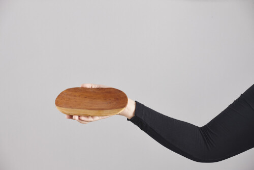 امرأة ترتدي عباءة سوداء تحمل أدوات خشبية مختلفة في أوضاع متعددة