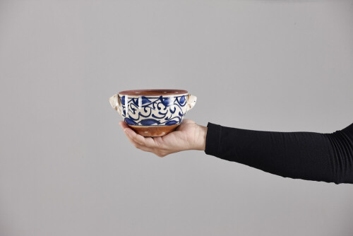 امرأة ترتدي عباءة سوداء تحمل أدوات فخارية مختلفة في أوضاع متعددة