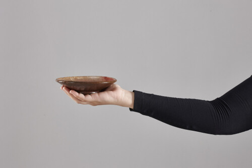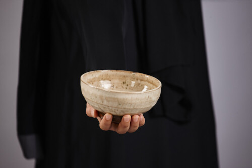 امرأة ترتدي عباءة سوداء تحمل أدوات فخارية مختلفة في أوضاع متعددة