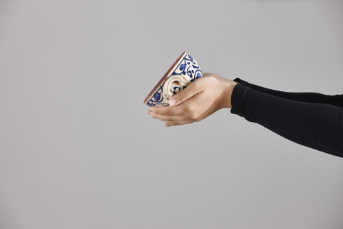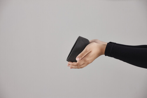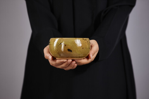 امرأة ترتدي عباءة سوداء تحمل أدوات فخارية مختلفة في أوضاع متعددة