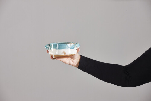 امرأة ترتدي عباءة سوداء تحمل أدوات فخارية مختلفة في أوضاع متعددة