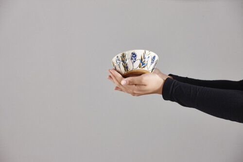 امرأة ترتدي عباءة سوداء تحمل أدوات فخارية مختلفة في أوضاع متعددة