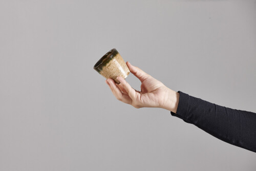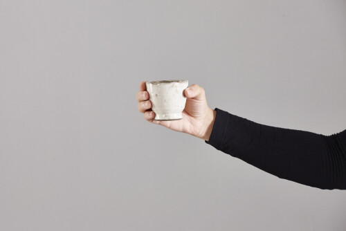 امرأة ترتدي عباءة سوداء تحمل أدوات فخارية مختلفة في أوضاع متعددة