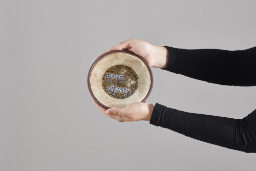 امرأة ترتدي عباءة سوداء تحمل أدوات فخارية مختلفة في أوضاع متعددة