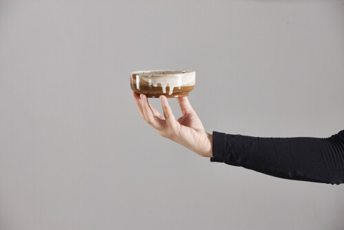 امرأة ترتدي عباءة سوداء تحمل أدوات فخارية مختلفة في أوضاع متعددة
