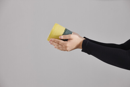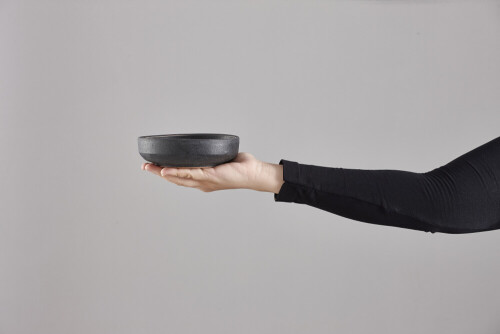 امرأة ترتدي عباءة سوداء تحمل أدوات فخارية مختلفة في أوضاع متعددة