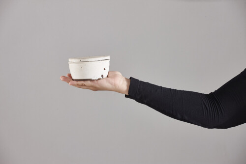 امرأة ترتدي عباءة سوداء تحمل أدوات فخارية مختلفة في أوضاع متعددة