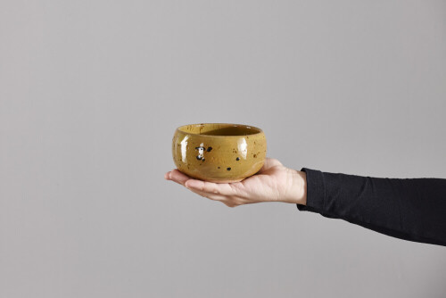 امرأة ترتدي عباءة سوداء تحمل أدوات فخارية مختلفة في أوضاع متعددة