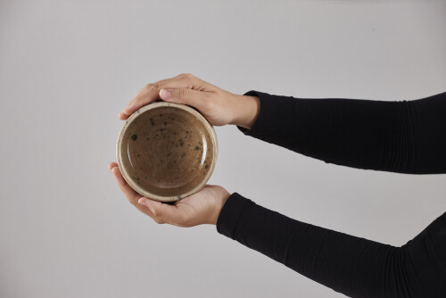 امرأة ترتدي عباءة سوداء تحمل أدوات فخارية مختلفة في أوضاع متعددة