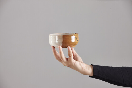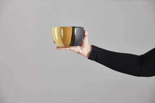 امرأة ترتدي عباءة سوداء تحمل أدوات فخارية مختلفة في أوضاع متعددة