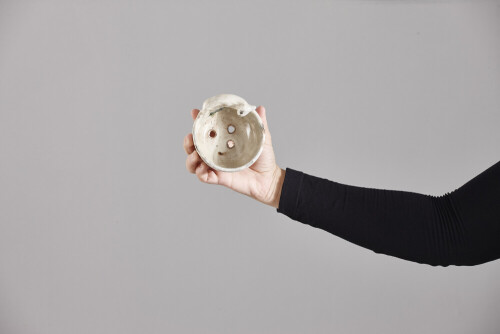 امرأة ترتدي عباءة سوداء تحمل أدوات فخارية مختلفة في أوضاع متعددة
