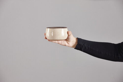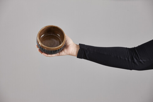 امرأة ترتدي عباءة سوداء تحمل أدوات فخارية مختلفة في أوضاع متعددة