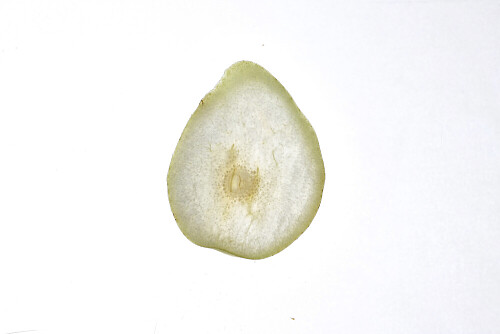 شرائح من الكمثري علي خلفية بيضاء مضيئة