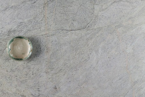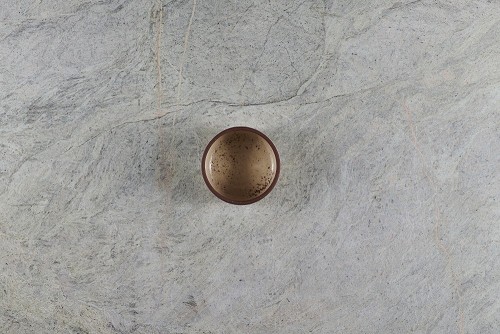 وعاء فخاري متعدد الألوان على خلفية من الرخام الرمادي