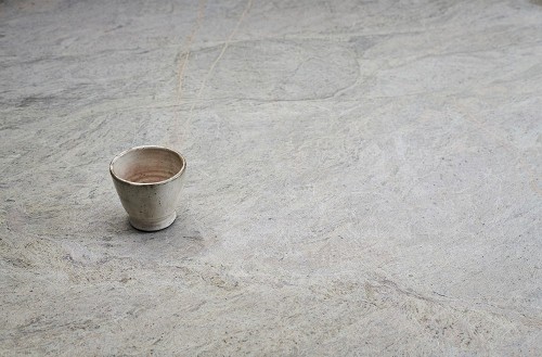 كأس فخاري متعدد الألوان على خلفية من الرخام الرمادي