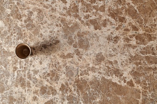 كأس فخاري على خلفية من الرخام البيج