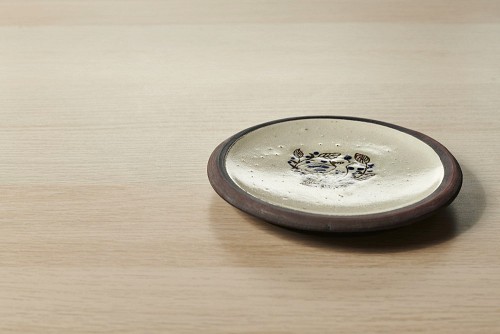 صحن فخاري مزخرف على خلفية خشبية فاتحة