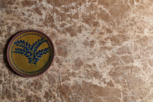 صحن فخاري مزخرف على خلفية من الرخام البيج