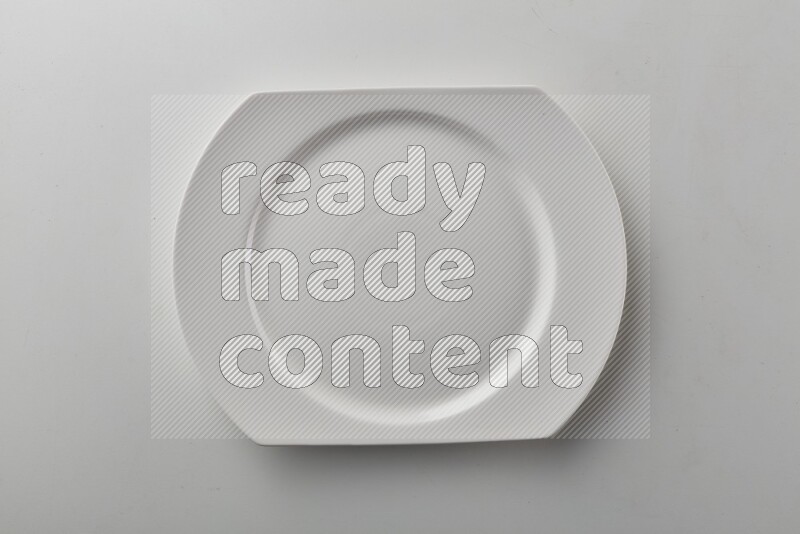 Top-view shot of a circular white plate on white background