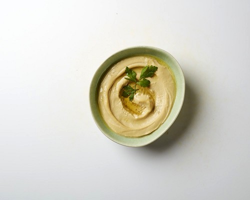Five stacked plain mini pancakes