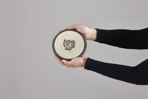 Beige Pottery Oven Bowl Plate with wooden honey handle