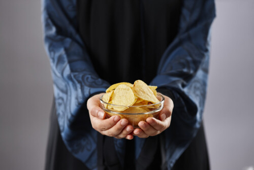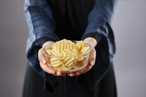 Hands holding assorted food