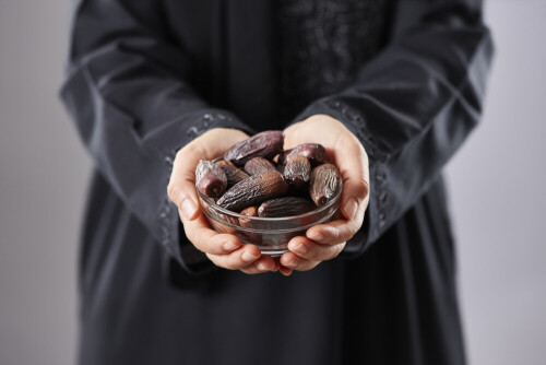 A woman posing in a blue background wearing blue Abaya no Hijab