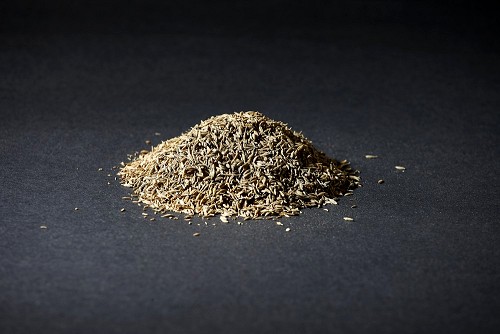 Cumin seeds on black flooring